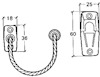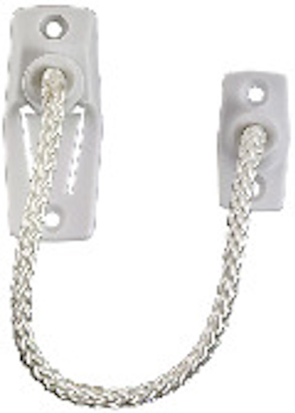 För inåt- och utåtgående fönster och fönsterdörr, där man vill begränsa öppningsläget. Stoppar bågen i ett öppningsläge som bestäms av spärranordningens placering. Kan frigöras genom att den fjädrande låstungan på spärrbrickan trycks in, samtidigt som linan häktas av. Passar såväl höger som vänster. Lina av polyester. Övriga delar av acetalplast. PP=påspack.