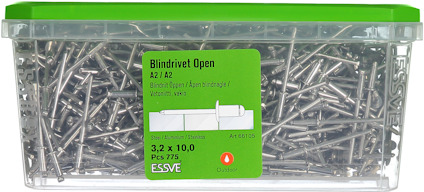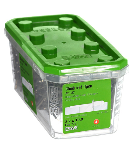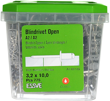 ESSVE Blindnit är lätt att montera med handverktyg eller tryckluftsdrivna verktyg, den ger starka, vibrationssäkra förband med låg-på-platsen-kostnad. Valet av rostfri A2 kvalitet minskar korrosionsrisken för montaget. ESSVE Blindnit är ett mycket användbart fästelement som ger konstruktörer stora variationsmöjligheter i produktutformning och materialval.