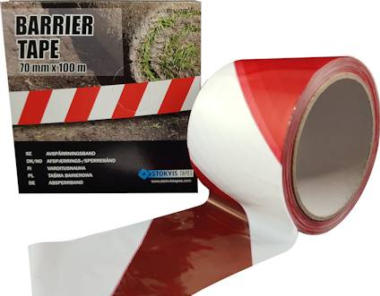 Benämning: AVSPÄRRNINGSBAND, Röd/vit, Avspärrning
