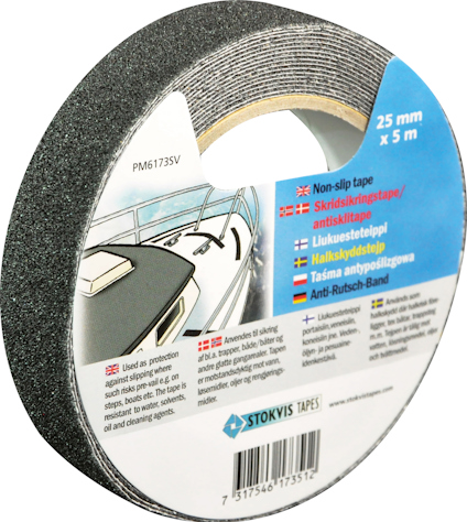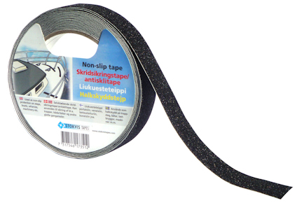 Halksdyddstejp som används som halkskydd överallt där det finns halkrisk tex trappsteg, båtar, ramper, lastbryggor osv. Finns i svart & vitt. 25 mm x 5 m. Läs mer