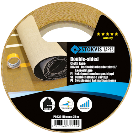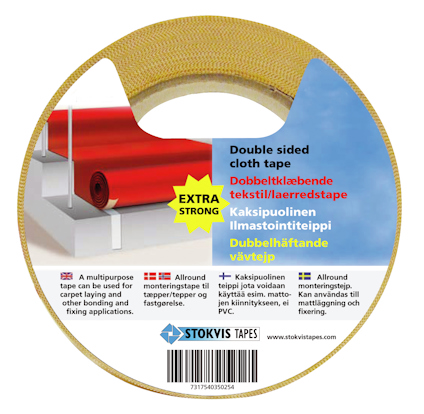 Egenskap: Vävburen extra stark dubbelhäftande tejp för tuffa ytor, belagd med extra mycket häftämne.