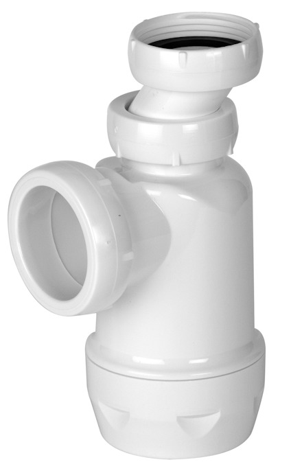 Vattenlås Pungvattenlås av plast med sidoutlopp för tvättställ. Exklusive rör och huv.