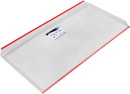 Ett läckageskydd som passar för kyl + frys i standardstorlek. Säkerhetsbrickan placeras under kyl och frys för att golvet under vitvarorna ska skyddas från kondens och läckage. Mindre mängder kondensvatten samlas upp och avdunstar på brickan. Vid eventuellt större läckage leds vattnet fram och kommer ut framför vitvarorna. På så sätt ser du tydligt att ett läckage har uppstått. En specialtejp ser till att underlägget ligger tätt fast mot golvet. Skivan är gjord i slagtålig PP-Plast. Produkten är testad och godkänd enligt typgodkännande 0505/01.