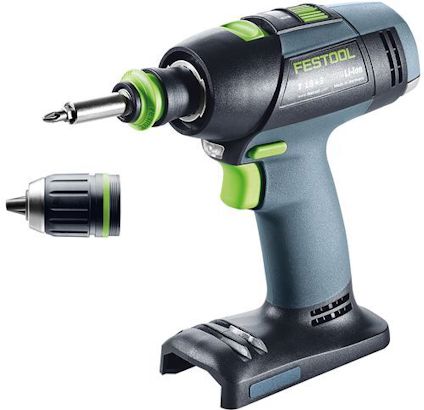 För full flexibilitet när du borrar och skruvar: helt elektronisk vridmomentinställning, CENTROTEC snabbytessystem, vinkel- och excentertillsats samt djupanslag underlättar alla borr- och skruvarbeten. Kombinationen av Li-HighPower-batteri och borstlös, underhållsfri EC-TEC-motor gör skruvdragaren T 18+3 lätt, hållbar och uthållig. För att du ska kunna jobba utan bekymmer är både skruvdragaren och batteriet helsäkrade med Festool Service. Finns i T-form eller – om du hellre vill – i C-form som C 18.