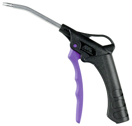 Greppvänliga renblåsningspistoler med handtag av plast. Låg vikt. Steglös reglering av luftmängden. Med upphängningsbygel.