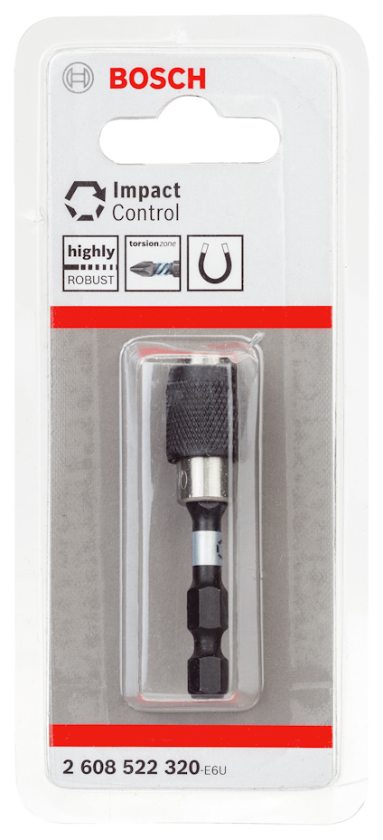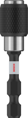 Mycket robust - Impact Control Universal Holder Quick Release erbjuder enkla borrbyten och extra stadig fasthållning av borr vid allmänna skruvdragartillämpningar. En permanent magnet säkerställer ett stadigt och fast grepp av borrarna som används. En snabblåsfunktion på chucken möjliggör dessutom snabba och enkla borrbyten och stöder ytterligare den starka fasthållningen av borrarna. Universalhållaren är utmärkt för alla fixeringsjobb som kräver elverktyg. Det har ett 1/4-tums sexkantsskaft för användning med vanliga borrar och slagborrar utan kabel med en 1/4-tums verktygshållare. Hållaren ingår i Bosch Pick and Click-system, som möjliggör enskilt byggbara tillbehörssatser för helt anpassningsbara borrsatser. Klickpassningsfack för enskilt inköpta paket ger en personligt anpassad sats och enkelt utbyte av gamla paket. Sexkantsskaft för maximal kraftöverföring hos standard trebacksborr och sexkantiga skruvdragarchuckar.
