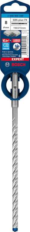 EXPERT SDS plus-7X hammarborr 8 x 150 x 215 mm Håller upp till 3 gånger längre än SDS plus-3 borr - Det är krävande att borra i armerad betong och det brukar vara väldigt slitsamt för borren. Vanliga borr med två skär fastnar i armeringsjärnen och går så småningom sönder. EXPERT SDS plus-7X har en avancerad design med fyra skär och huvud helt i hårdmetall som är tillverkad i ett enda stycke av ett av det hårdaste materialet av alla: Den kläms inte fast och försvagas inte av slageffekten. Tack vare Bosch Carbide Technology och huvudet helt i hårdmetall håller EXPERT SDS plus-7X mycket längre än vanliga hammarborr. Det stansar effektivt genom armeringsjärn, så du behöver inte pausa för att rikta om verktyget eller byta borr när du hamnat i stål. För bygghantverkare som regelbundet borrar i betong och armerad betong, till exempel för beslag och installationer, erbjuder Bosch EXPERT SDS plus-7X hammarborr oöverträffad prestanda, tillförlitlighet och livslängd. Det är EXPERT-tillbehöret nummer ett till SDS plus borrhammare. Passar alla SDS plus borrhammare.