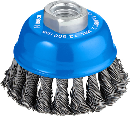 Extra grov finish - Heavy for Metal-ståltrådsborste ger extra grov ytfinish. Den här borsten har virad tråd för tung rengöring. Den är idealisk för användning med metall och för rengöring av medelstora till stora stålytor, till exempel borttagning av rost, grundfärg, målarfärg och fernissa. Den är avsedd för användning med vinkelslipar med M14-gänga. Borsttrådarna finns i olika tjocklek beroende på hur mycket som ska slipas. Tjockare trådar är aggressivare och ger grövre ytfinish medan tunnare trådar ger finare och jämnare ytresultat. Passar GGS 6- och GGS 8-rakslipar med M14-gänga.