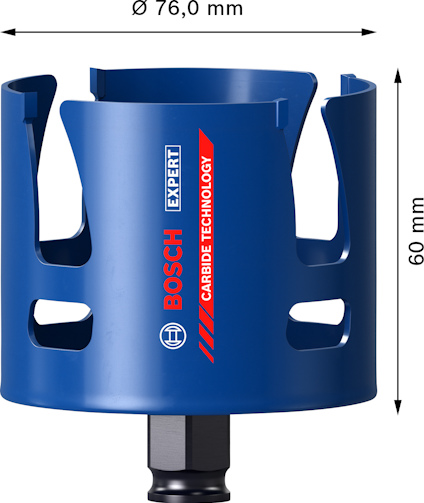 EXPERT Construction Material hålsåg 76 x 60 mm Håller upp till 50 gånger längre än Bosch 2609256D05 hålsåg i tuffa material - Håltagning i tegel, mjukt kakel och gips är en viktig del i arbetet för VVS-are och elektriker på byggarbetsplatser eller under renoveringsarbeten. Det är inte många hålsågar som klarar av den här sortens arbete i en rad olika tuffa byggmaterial, men det fixar EXPERT Construction Material. Den här hålsågen levererar – och håller till många jobb. Med bara ett fåtal enorma hårdmetalltänder på stålkroppen levererar EXPERT Construction Material ett rejält bett. De stora slitsarna är optimerade för snabb spånborttagning, så den äter sig snabbt igenom allt från tegel till trä och spånskivor. Bosch Carbide Technology är en optimal blandning av de hårdaste metallerna och garanterar extremt lång livslängd. Bosch EXPERT Construction Material hålsåg är en robust hålsåg som är väldigt användbar på byggarbetsplatser och erbjuder ordentlig valuta för pengarna för yrkeshantverkare efter den håller så länge. För användning med Bosch Power Change Plus nyckelfri spindel: erbjuder precision och robusthet.