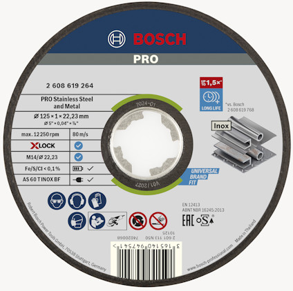 Kraftfull kapning - X-LOCK Expert for Inox and Metal kapskiva möjliggör kraftfull kapning med maximal säkerhet i rostfritt stål och metall. Skivan är tillverkad av förstklassig aluminiumoxid med funktionella fyllnadsmedel och tillsatser för att minska värmen som genereras vid kapning. Detta ger ytresultat av hög kvalitet och säkerställer att skivan håller länge. Dessutom är skivan fri från fyllnadsmedel som innehåller järn, svavel och klor. Maximal säkerhet under arbetet säkerställs med det precisionstillverkade glasfibernätet. X-LOCK kapskivor passar även på standardvinkelslipar. Det går snabbt och enkelt att byta kapskivor tack vare det nyckelfria X-LOCK-systemet. Klicka den på plats med X-LOCK – marknadens snabbaste system för byte av tillbehör. Passar även till vinkelslipar med mutter och gänga.
