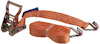 Liten men kraftfull surrning lämplig för surrning av last på släpkärror, mindre lastbilar, invändigt i skåpbilar och containers. Orange polyesterband med insydda ränder för tontal. Tillverkad enligt EN 12195-2 och tredjepartstestade.