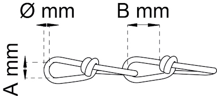 Kätting av stål. Angivna värden för rekommenderad maxbelastning är beräknade och garanteras ej. Hållbarhet för kätting anges nedan i maxvikt. Det är den vikt som vi säkert vet att produkten skall hålla för. Brottsgränsen är när produkten går av, för vår kätting är det 5 gånger maxvikten. Levereras på rulle med dimension 250/80 mm. A=inre bredd, B=inre längd.