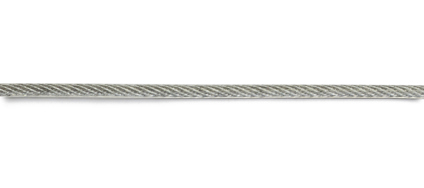 Plastbelagd wire av elförzinkad ståltråd. Längd 10 meter. Wirens konstruktion anges enligt AxB+C, där A är antalet kardeler, B antalet trådar per kardel och C beskriver kärnan (FC=fiberkärna). Denna wire har konstruktionen 6x3+1FC. Maxbelastning 40 kg (beräknat värde, garanteras inte). Brottgränsen, när materialet brister, är för vår wire 6 gånger angiven maxbelastning.