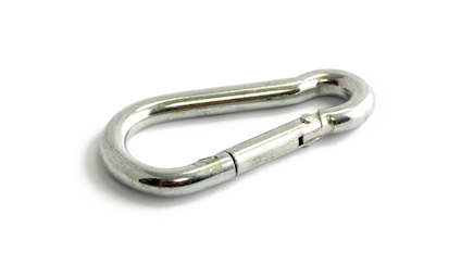 Karbinhake av stål. A=längd, B=godstjocklek. Angivna värden för rekommenderad maxvikt är beräknade och garanteras ej. Läs mer