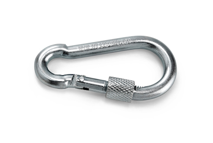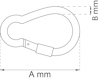 Karbinhake av stål med gängad spärrfunktion. Angivna värden för rekommenderad maxvikt är beräknade och garanteras ej. A=längd, B=tjocklek. Läs mer