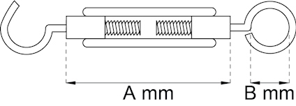 Spännkrok av zamak, med ögla och krok av stål. Gänga M8. Kan förlängas från min 130 mm till max 175 mm. Läs mer