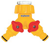 Krankoppling 2-vägs. Tvåvägskran gör det möjligt att ansluta 2 slangar till en utomhuskran. För kranar med 1/2" BSP (G1/2) eller 3/4" BSP (G3/4) utvändig gänga.